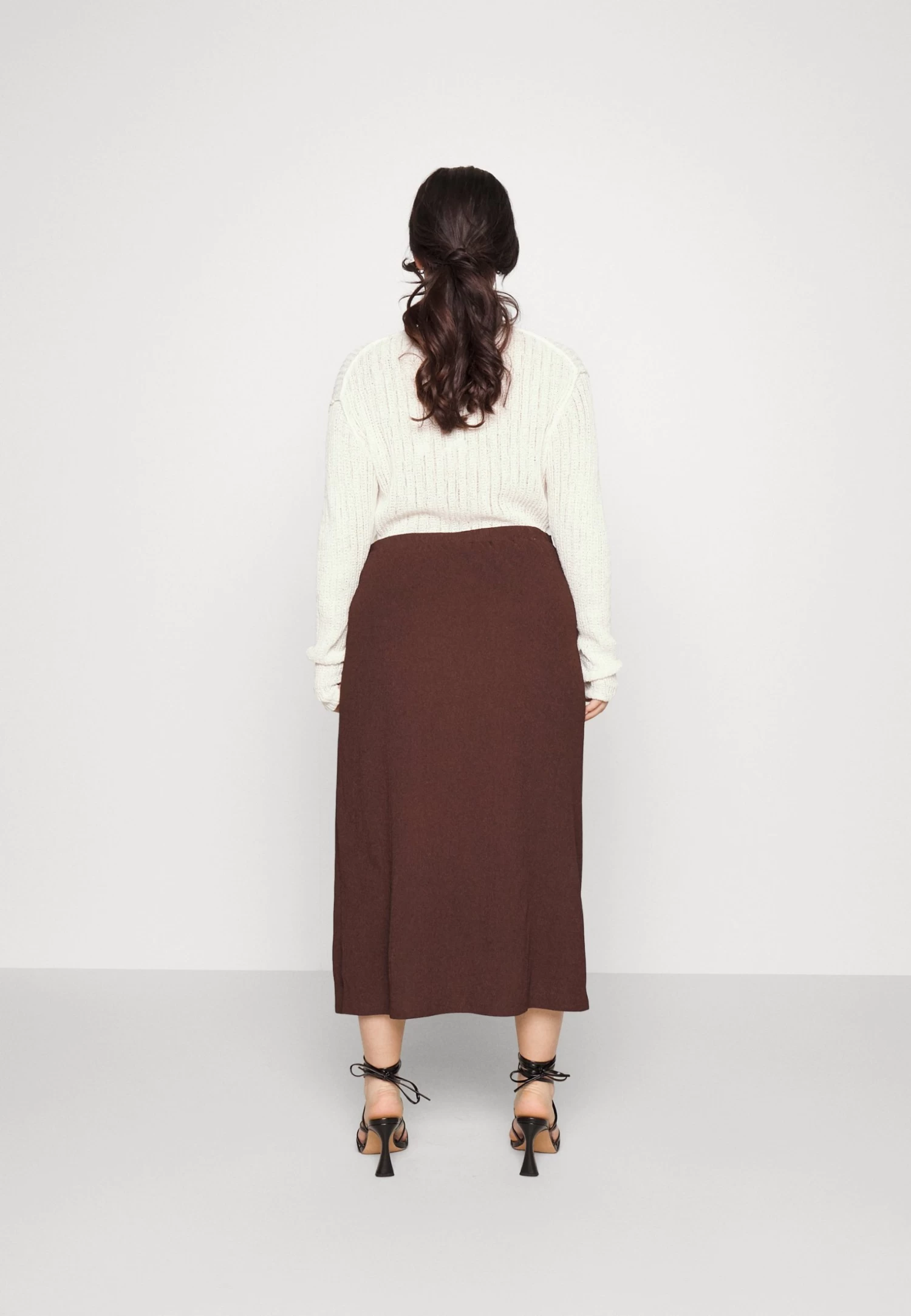 Curvy Textured Sarong Midi Skirt – Wikkelrok – Brown